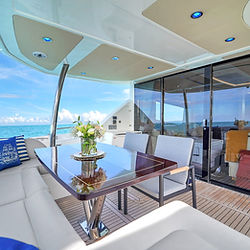 A large flybridge for social gatherings stands M4 apart, while a large saloon ideal for entertaining guarantees fun all day long. The versatile layout is ideal for both families and groups of friends, with an abundance of natural light streaming through the generous windows. Impressive exterior deck space makes M4 the yacht for all occasions. A hydraulic platform adds an extra layer of convenience to the aft deck area, where watersports and sea swimming are made easy with direct access to the water. Hydraulic fin zero-speed stabilizers also mitigate any roll at anchor, guaranteeing guest comfort in all weather A proven charter platform built to US specification by renowned British yacht builder Sunseeker, M4 is an exciting yacht on which to cruise and explore inviting, azure waters. What's Included? • Captain & crew • Soft drink selection • Ice, water and tableware • Towel service • Trip fuel *All charters subject to 18% gratuity for crew*